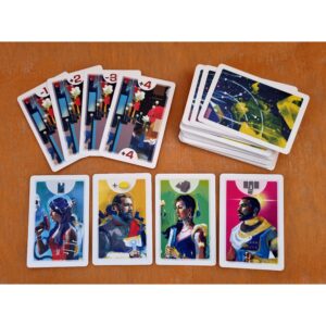 - Kosmiline teema ja värvikad kaardid loovad tõelise tulevikuatmosfääri