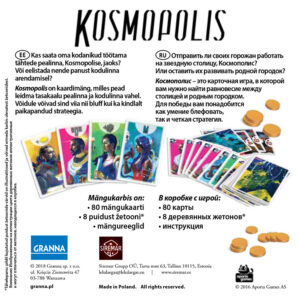 Tulevik on käes ja linnad konkureerivad, et saata oma parimad ajud kaugesse Kosmopolisesse – pealinna, kus hiilgus ja punktid ootavad. Aga ettevaatust – liiga agarad saadetised võivad kodulinna tühjaks jätta ja bluff võib pöörduda sinu vastu. Selles nutikas kaardimängus pead leidma tasakaalu kodulinna arendamise ja pealinna panustamise vahel, et koguda kõige rohkem punkte ja võita mäng.