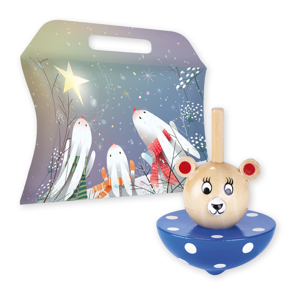 Rõõmus ja erksavärvilise loomadisainiga puidust vurr, mis on nobe keerlema. Lükka hoog sisse ja proovi järele!